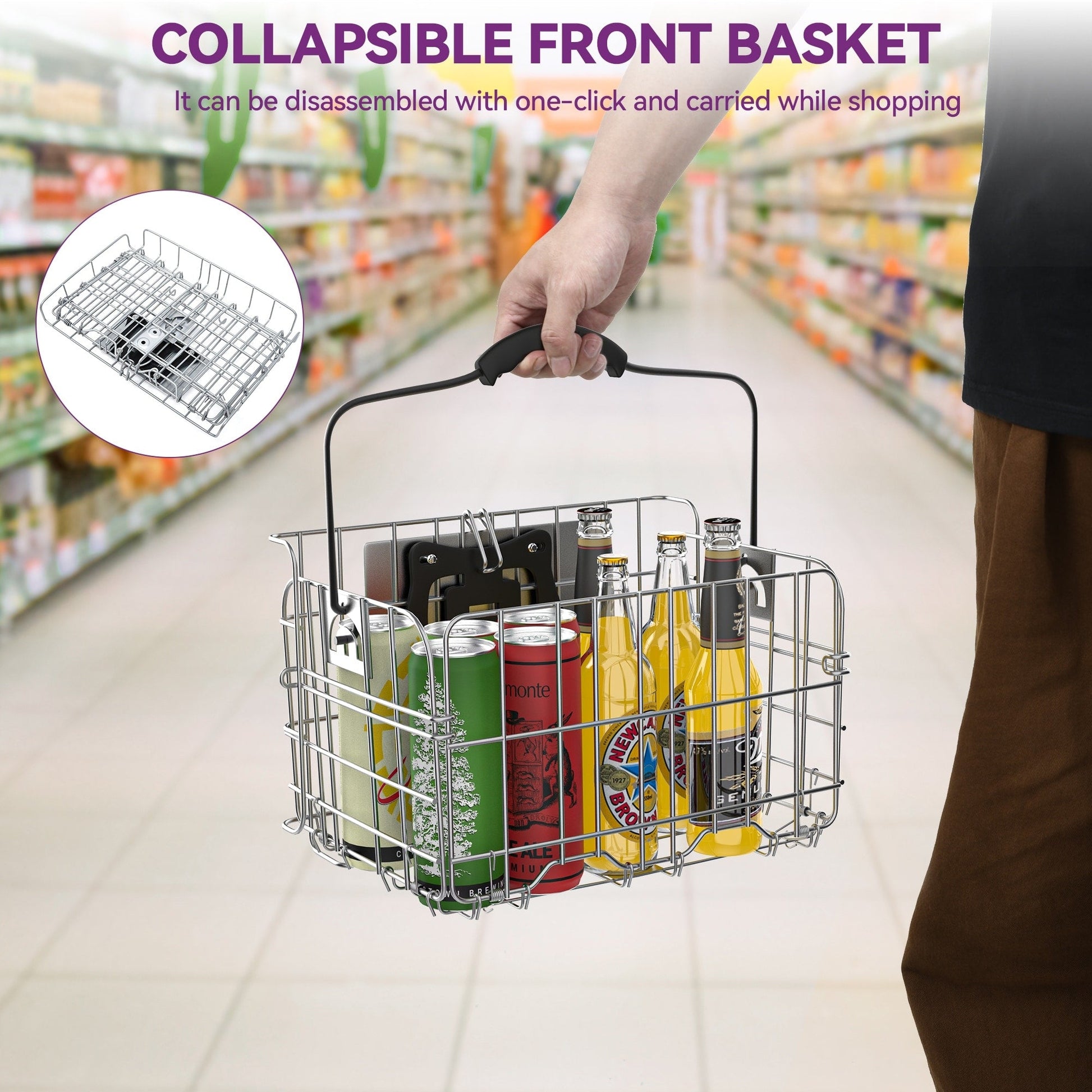 - Panier arrière robuste d'une capacité de 55 lb, parfait pour ranger les courses et même les animaux de compagnie