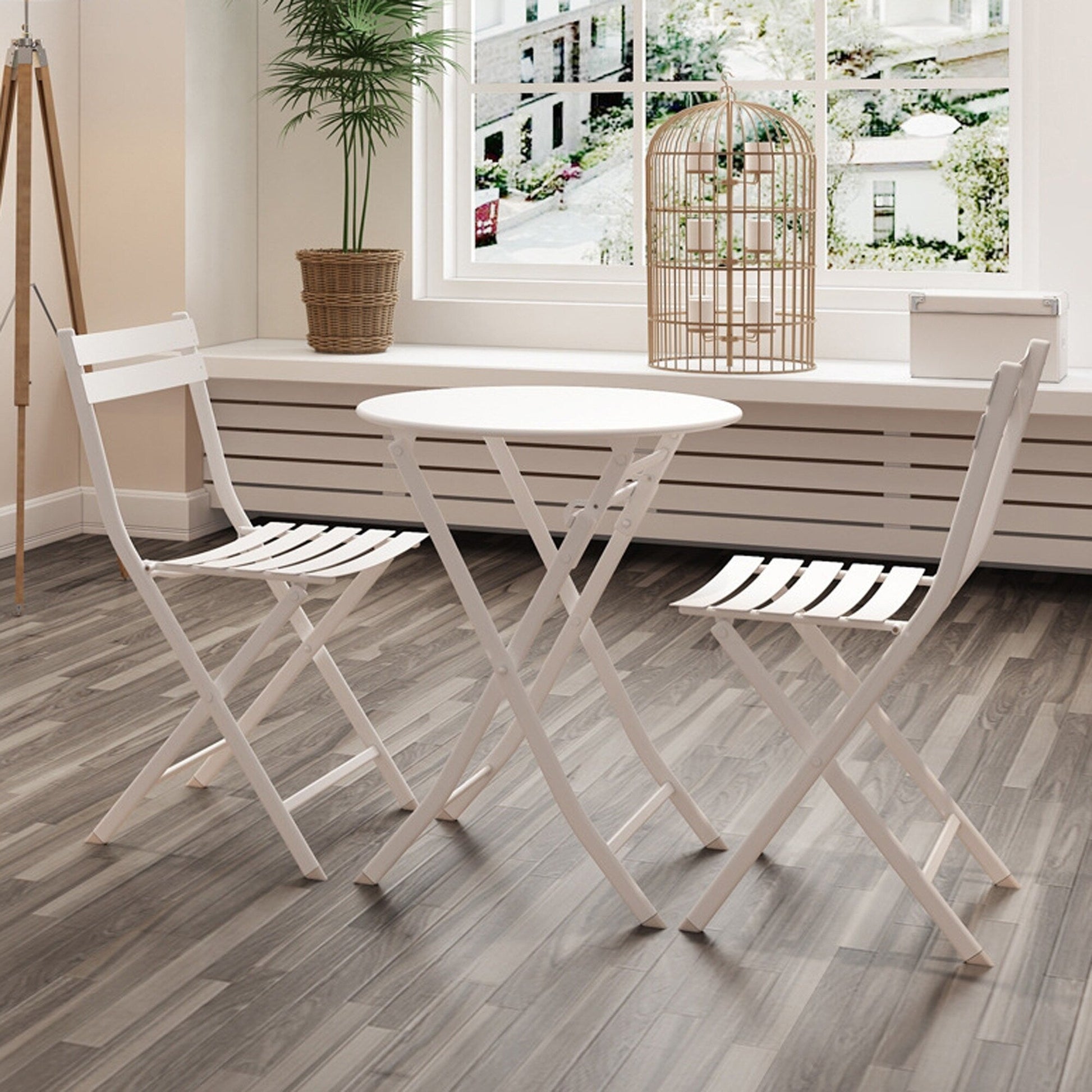 Ensemble bistro minimaliste de patio 3 pièces avec table ronde pliable et chaises - Ensemble bistro de patio 3 pièces
