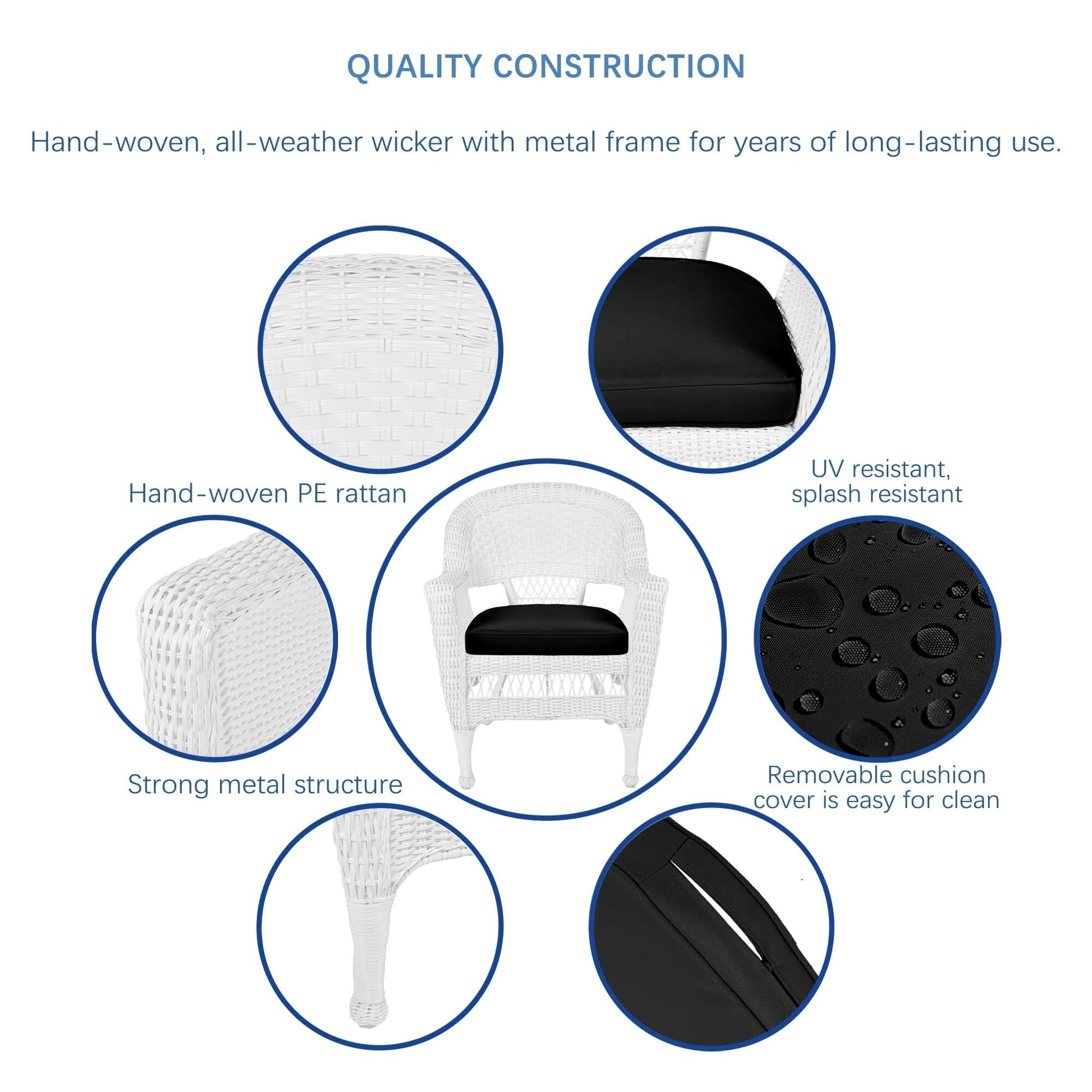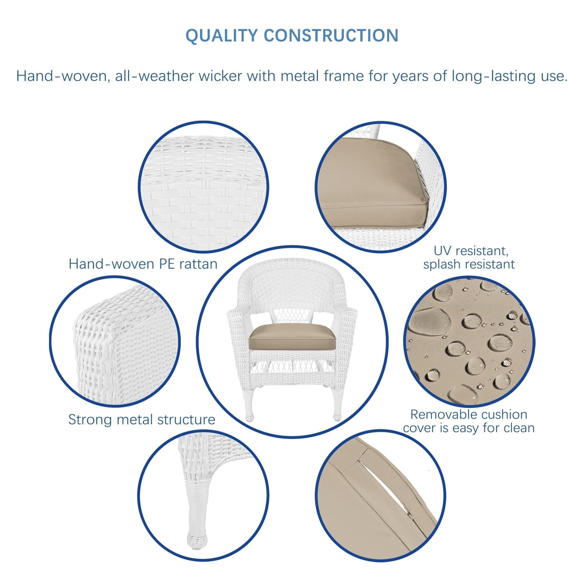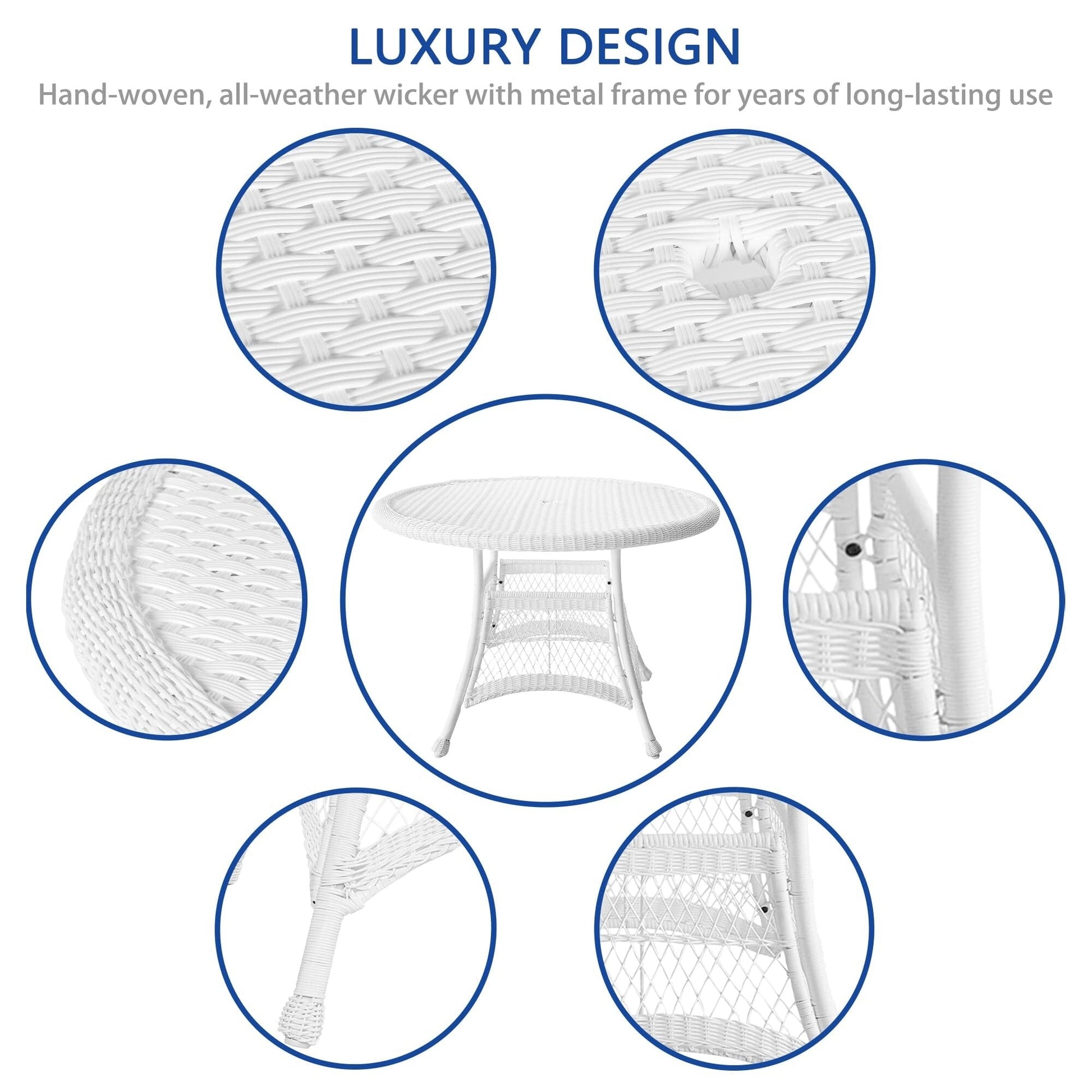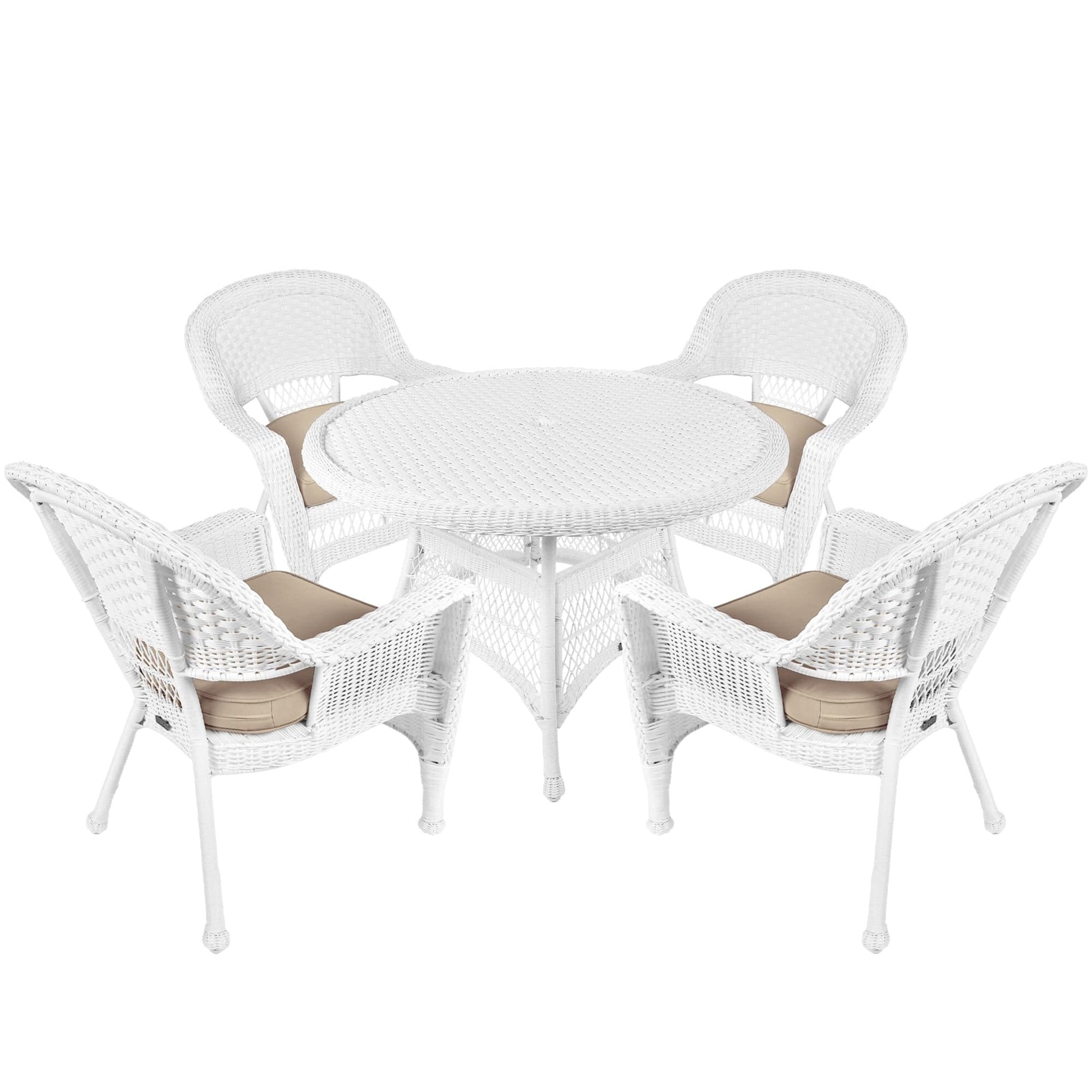 Améliorez le confort de votre espace extérieur avec cet ensemble de salle à manger 5 pièces en résine tressée blanche. Profitez du confort de la vie intérieure avec cet élégant ensemble en osier, composé d'une table ronde et de quatre chaises en osier, avec coussins moelleux, disponibles en plusieurs coloris. Cet ensemble est conçu pour durer grâce à sa structure en acier et sa résine tressée résistante aux intempéries.