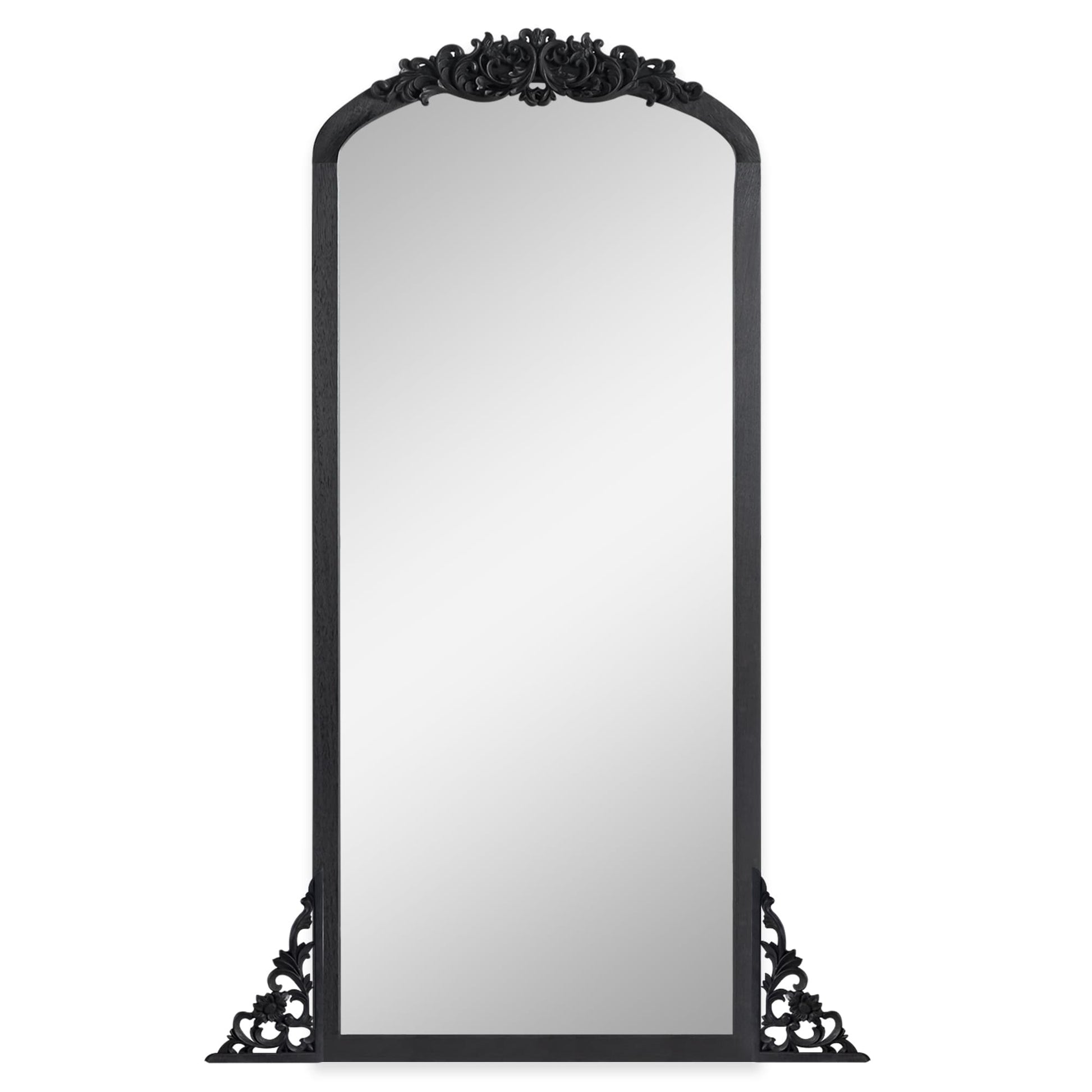 Miroir de sol sculpté en bois massif de forme arquée sur toute la longueur