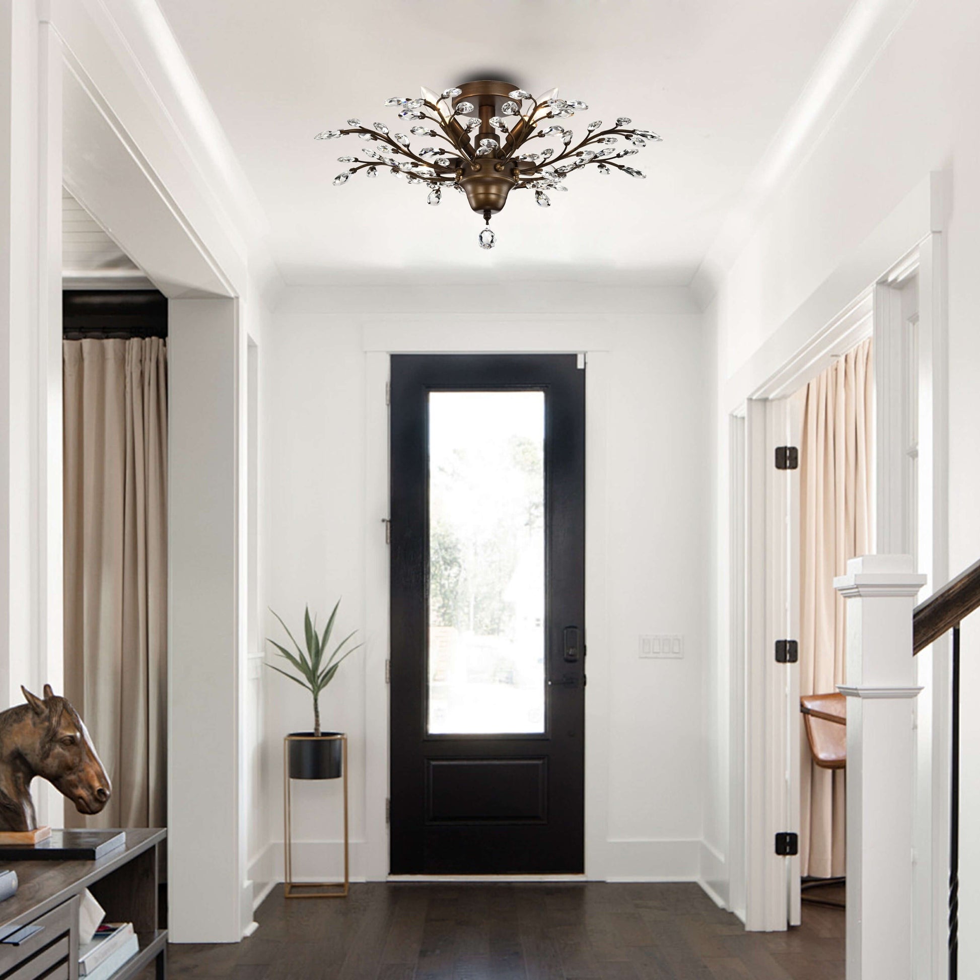 Ajoutez une touche d'élégance à n'importe quelle pièce avec le plafonnier Holly à 4 lumières et feuilles de cristal. Sa finition et ses feuilles de cristal transparent témoignent d'un savoir-faire artisanal de qualité et d'un style raffiné. Mesurant 60 cm de diamètre et 28 cm de hauteur, ce luminaire d'intérieur nécessite quatre ampoules de 60 watts (non fournies) et est idéal pour illuminer tout espace de vie.