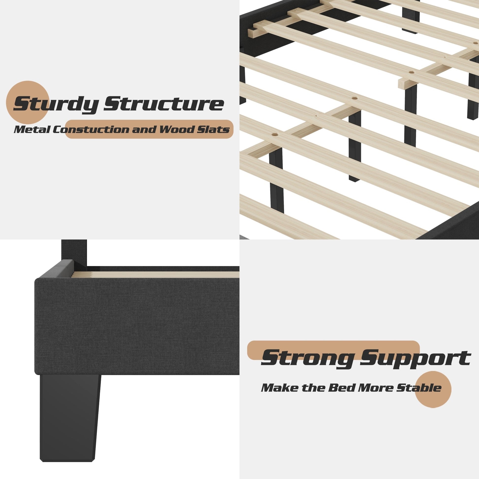 - Structure robuste : le cadre est fait de métal et de bois de haute qualité, robuste et durable.