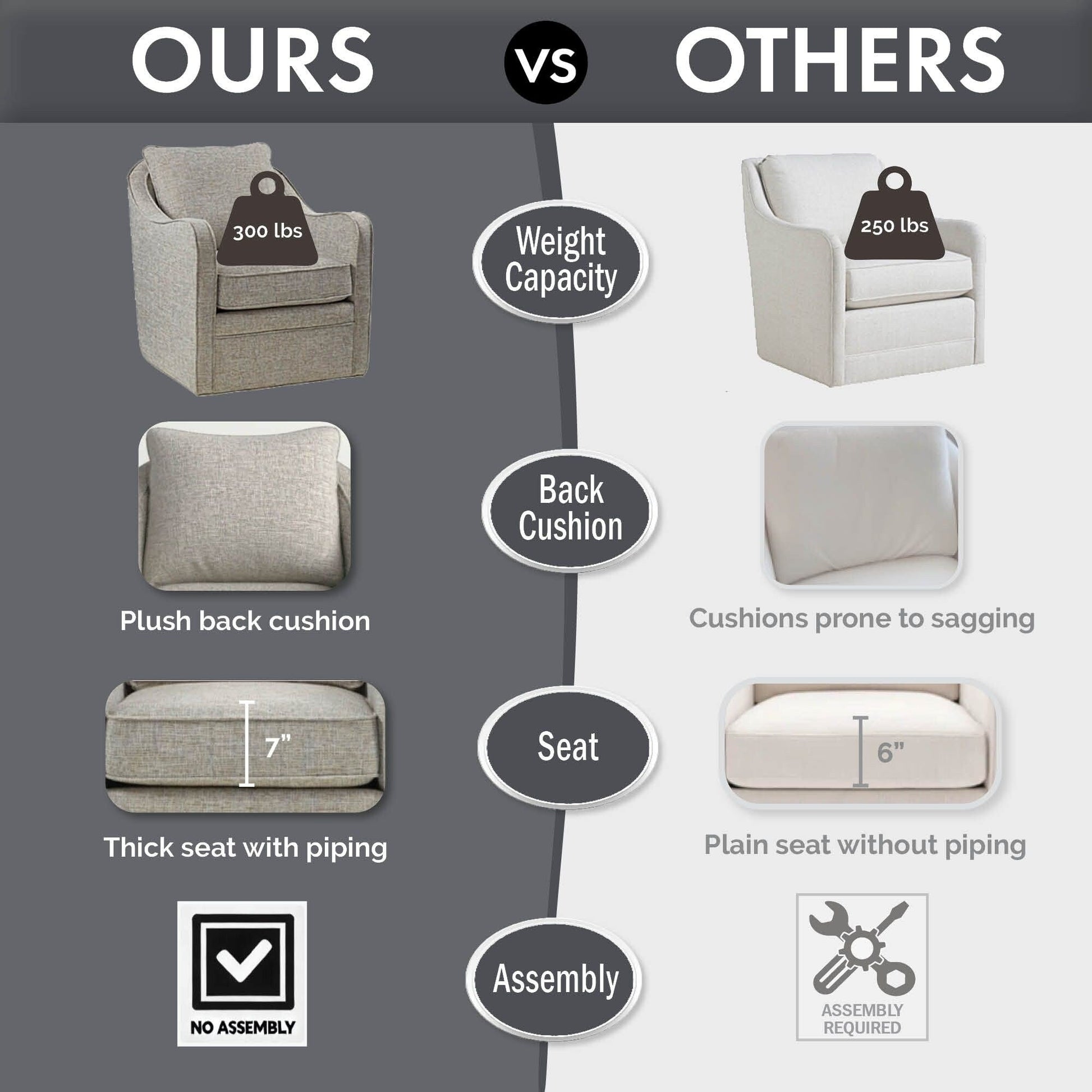 - Le cadre en contreplaqué avec du bois massif pour le renforcement et une base pivotante en métal résistant à la corrosion garantissent une durabilité à long terme et supportent jusqu'à 300 lb