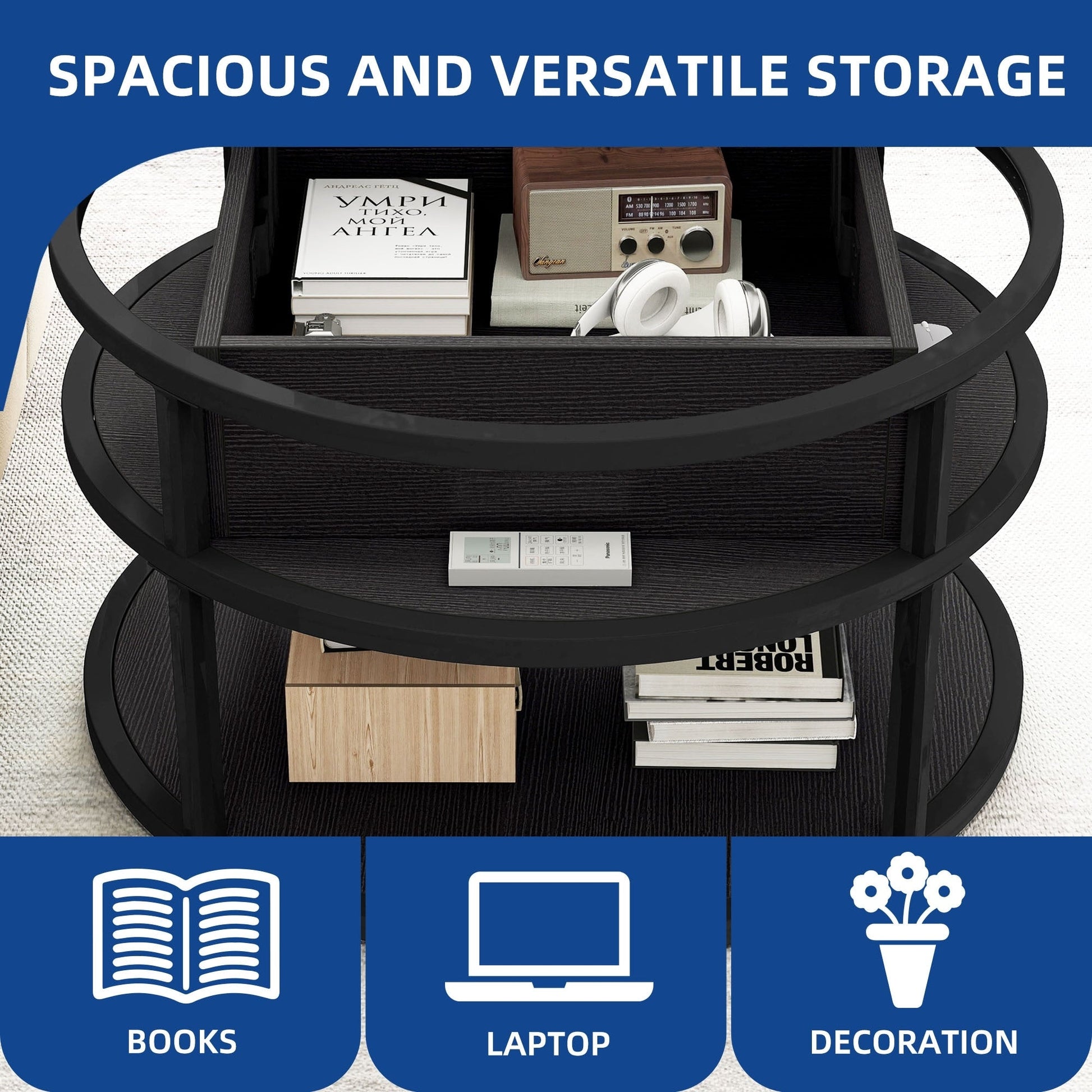 Découvrez cette table basse ronde tendance avec rangement intégré, un mariage unique de style et de fonctionnalité. Dotée d'un mécanisme de levage en métal robuste, cette table basse relevable vous permet de travailler ou de dîner confortablement installé(e) dans votre canapé. Elle comprend un compartiment dissimulé pour vos effets personnels, des étagères ouvertes pour les petits objets et un espace de rangement généreux. Sa structure en tubes de fer double couche et panneaux de particules lui confère stabilité et durabilité. Des patins de protection sont également inclus pour une utilisation sûre et silencieuse.