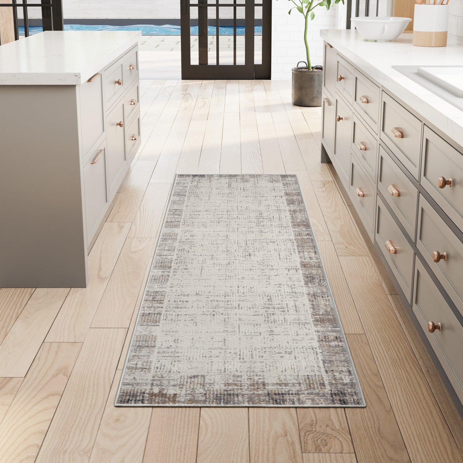 Tapis abstrait gris ivoire Nourison Emily pour l'intérieur uniquement