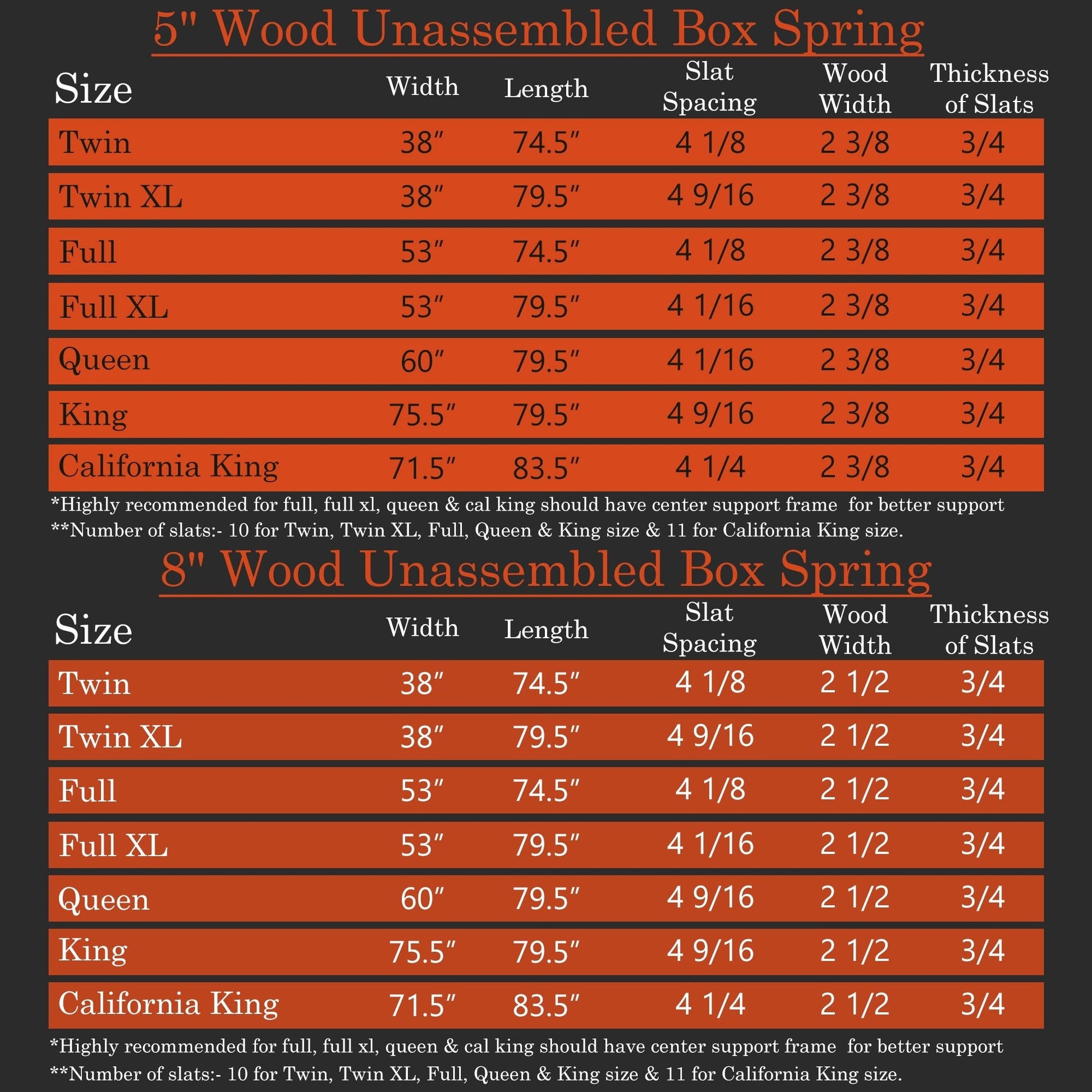 ONETAN, sommier/sommier en bois facile à assembler de 5 po et 8 po, blanc.
