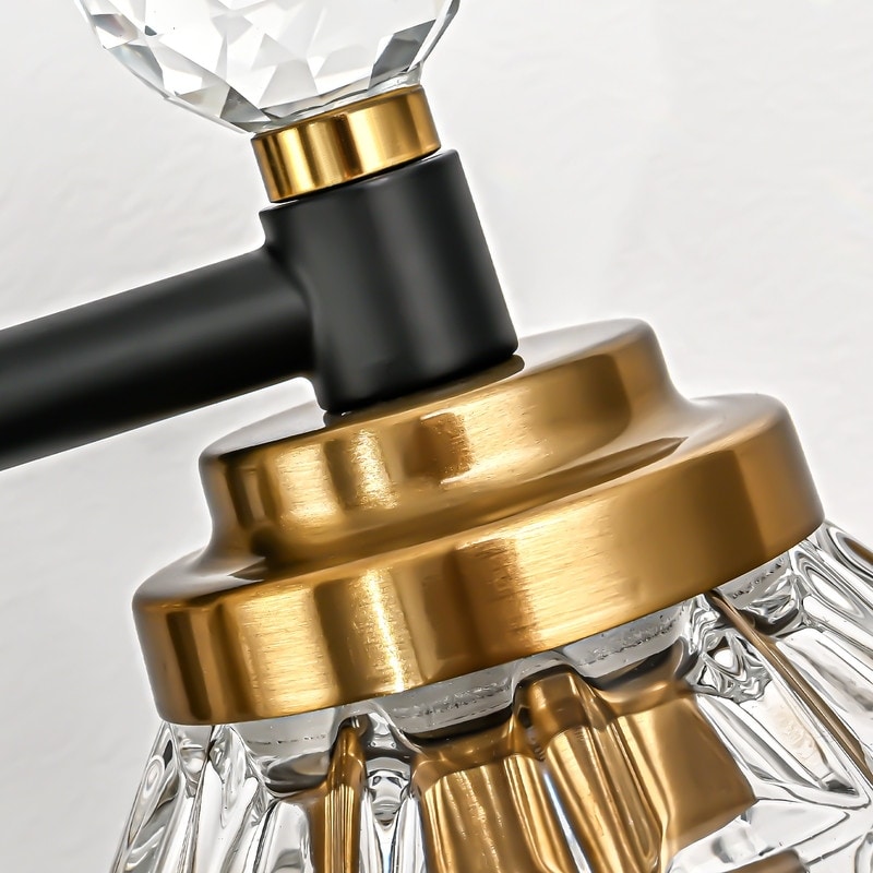 Illuminez votre salle d'eau ou votre salle de bains attenante avec élégance et raffinement grâce à cette applique murale glamour en noir et or. Fabriquée en métal poli noir et or, cette applique au design soigné présente une élégante plaque arrière arrondie, tandis qu'un bras horizontal aux courbes harmonieuses est orné de trois embouts en cristal. Les abat-jour en forme de cloche, en verre facetté, complètent le design et diffusent une lumière douce et agréable dans votre espace. Cette applique à intensité variable peut être installée vers le haut ou vers le bas pour plus de polyvalence et est compatible avec différents types d'ampoules et températures de couleur pour créer diverses ambiances.