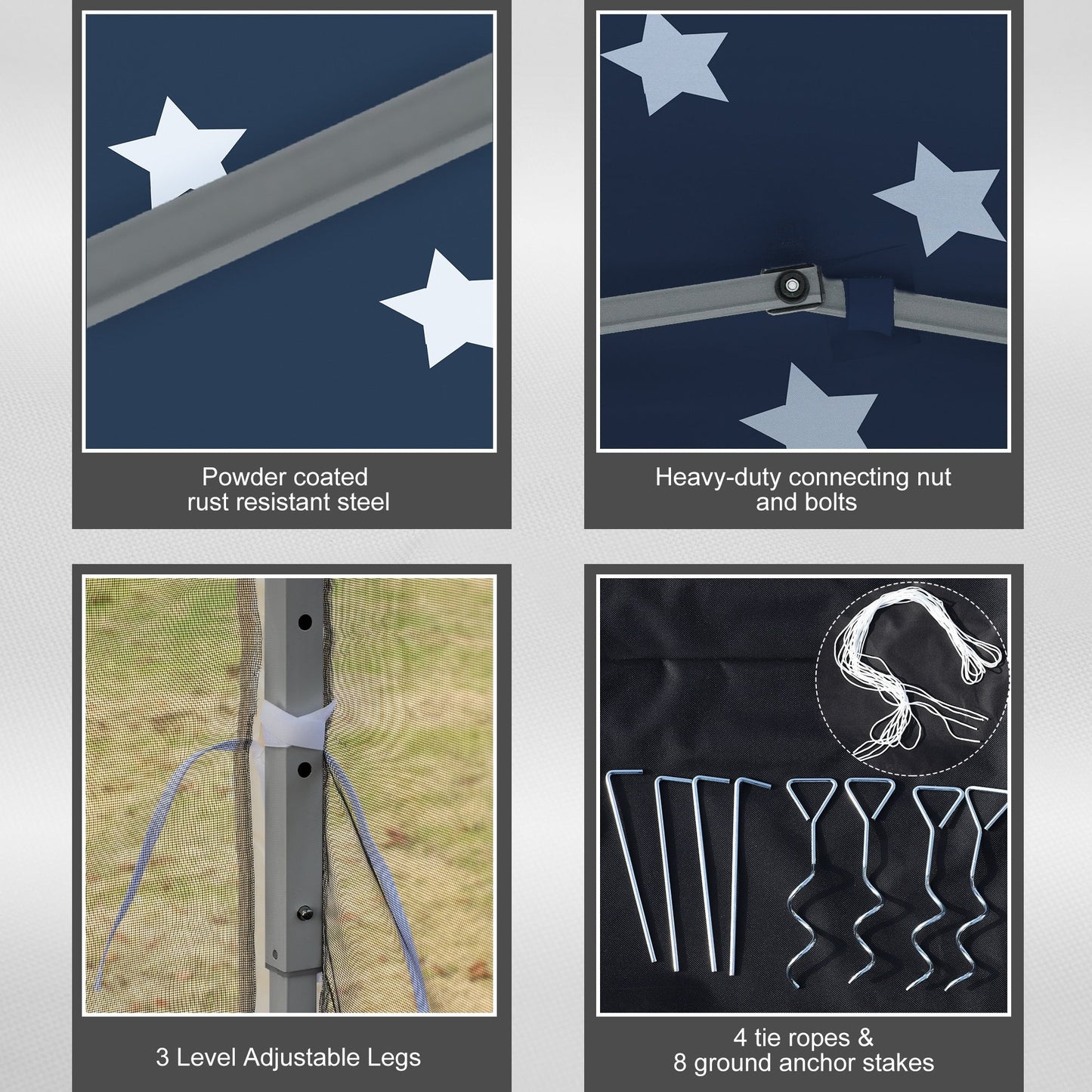 - Matériaux : Cadre en acier, tissu Oxford 420D, maille