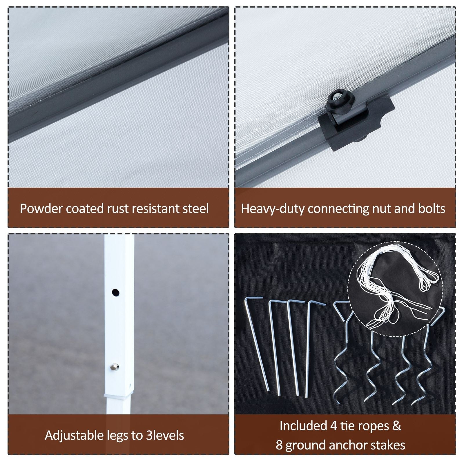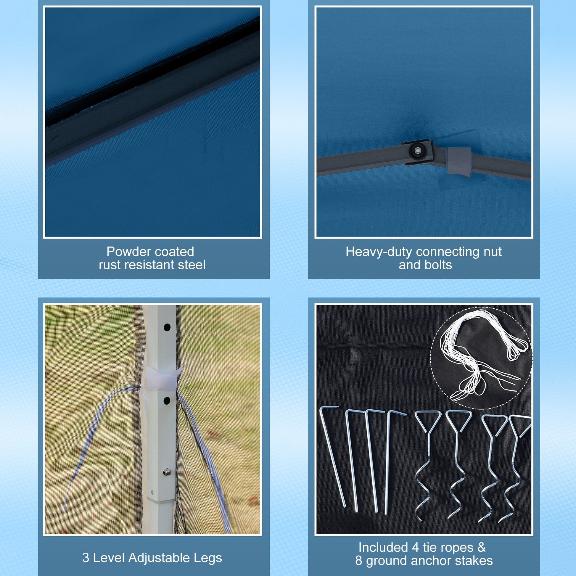 Prenez votre boisson préférée et profitez d'un moment de détente à l'ombre en quelques minutes grâce à la tonnelle Outsunny de 3 m x 3 m à montage facile. Idéale pour les réunions de famille, les pique-niques, le camping ou les fêtes d'avant-match, elle offre un espace de détente à l'abri des rayons UV nocifs du soleil. Utilisez la tonnelle instantanée pour vous protéger du soleil ou installez les parois amovibles en filet pour une protection solaire supplémentaire. N'ayez plus peur de sortir ! Installez une tonnelle Outsunny.