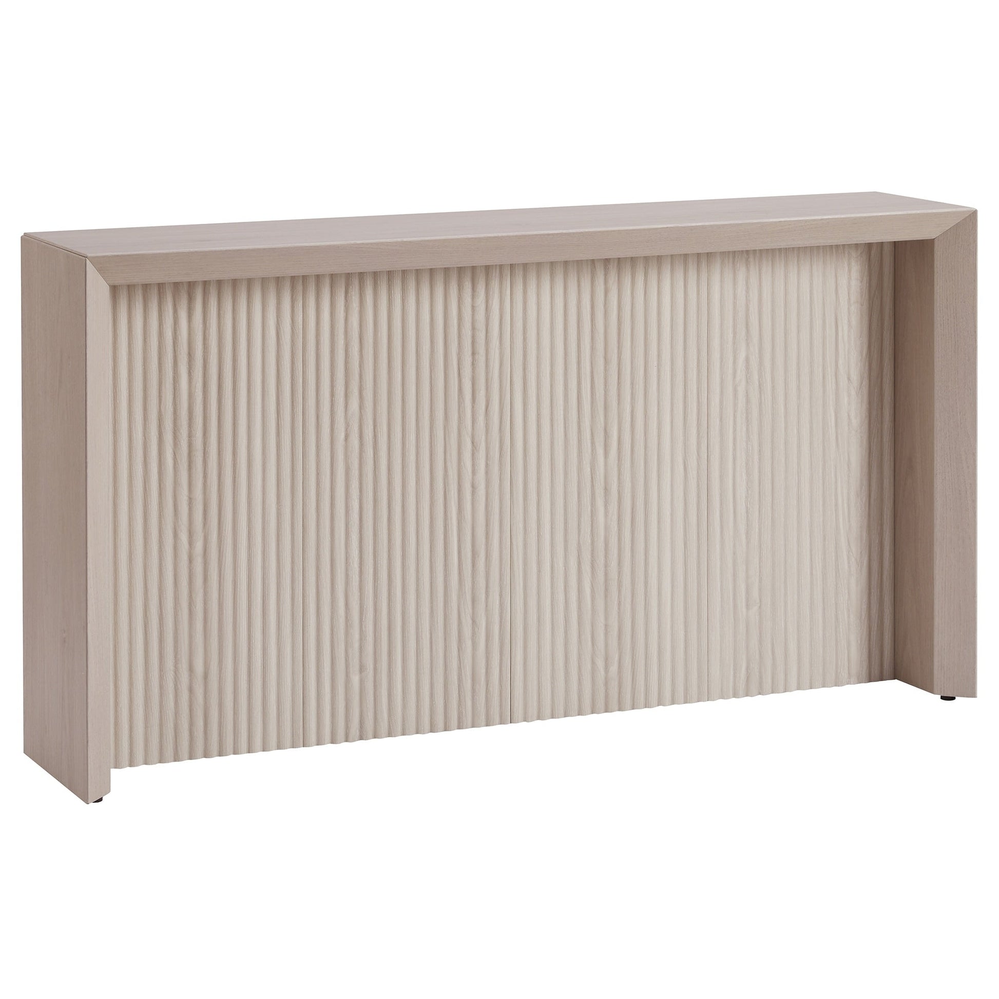 D'une simplicité saisissante, cette console moderne met en valeur ses lignes épurées et son design épuré. Son design harmonieux est sublimé par des bords biseautés, tandis que son dossier cannelé en retrait crée un arrière-plan texturé. Sa finition imitation bois naturel apporte une touche de couleur tendance à votre espace. Facile à assembler, c'est la pièce idéale pour moderniser sans effort votre salon, votre séjour ou votre bureau.