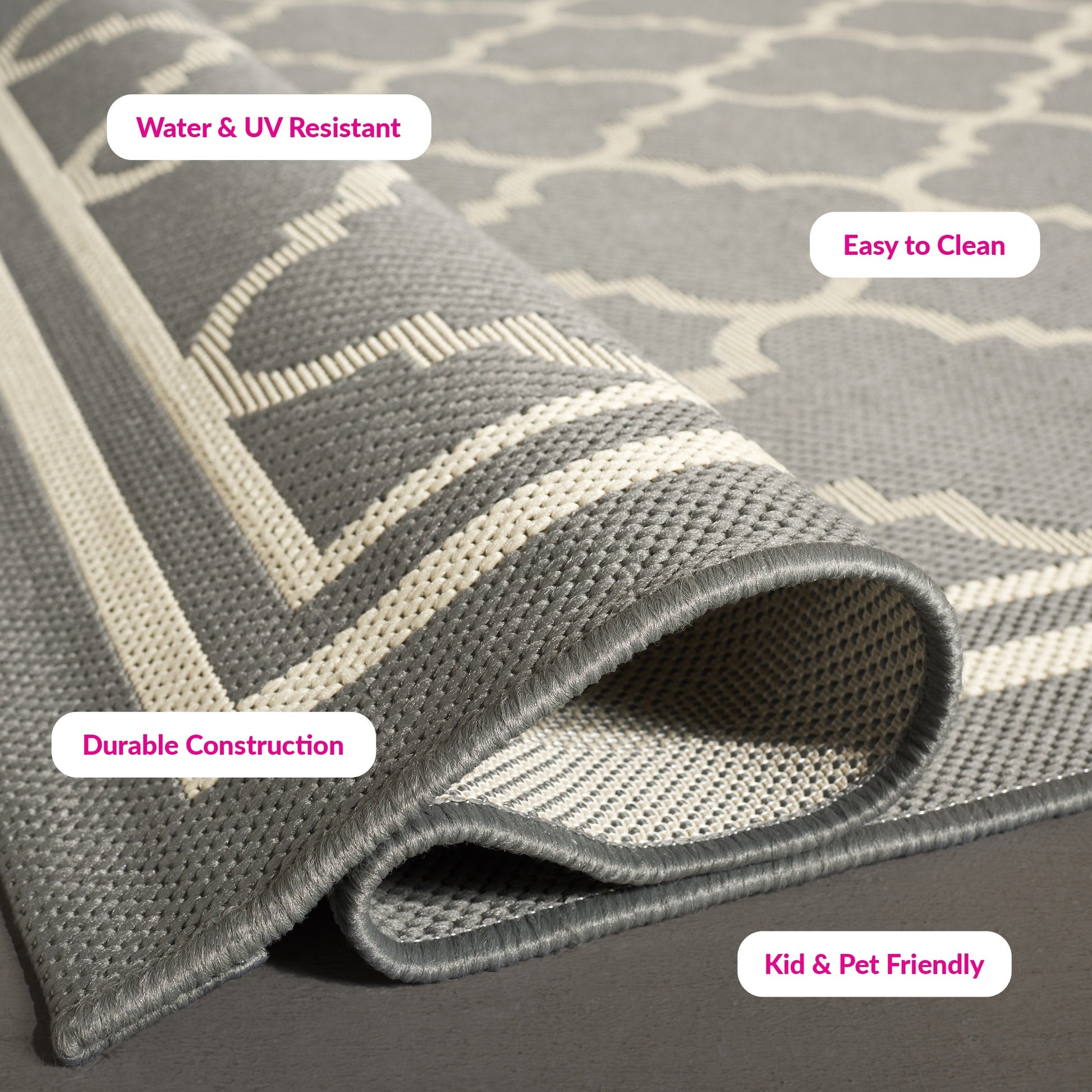 Résistant aux taches, aux intempéries et aux UV : tissé à la machine à partir de fibres synthétiques améliorées pour une résistance pratiquement nulle aux taches et à la perte de poils