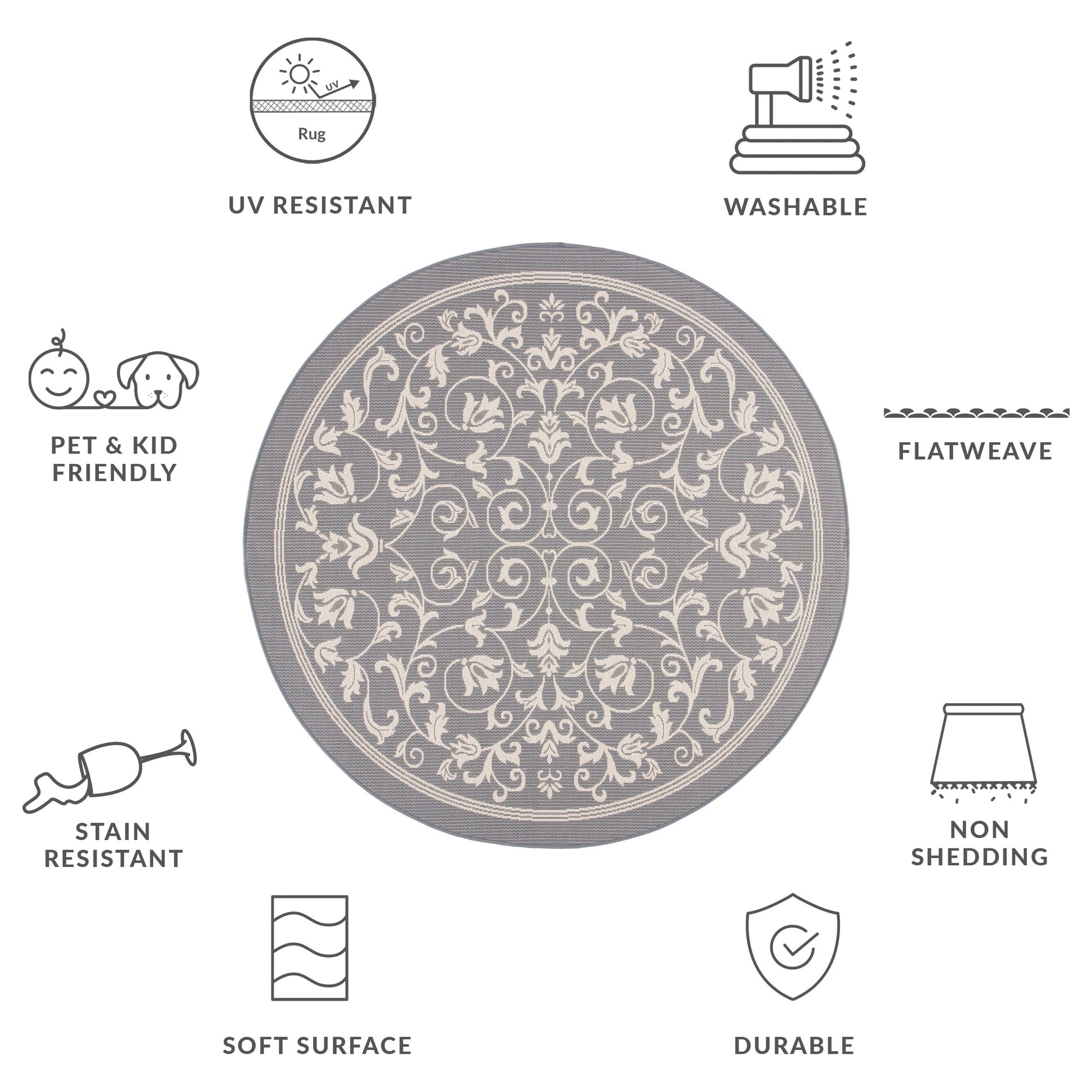 Entretien facile et durable : un nettoyage sans stress comprend un passage régulier de l'aspirateur, un rinçage avec un tuyau d'arrosage à l'eau savonneuse et un séchage à l'air libre. Lorsque vous ne l'utilisez pas à l'extérieur, nous vous recommandons de le ranger.