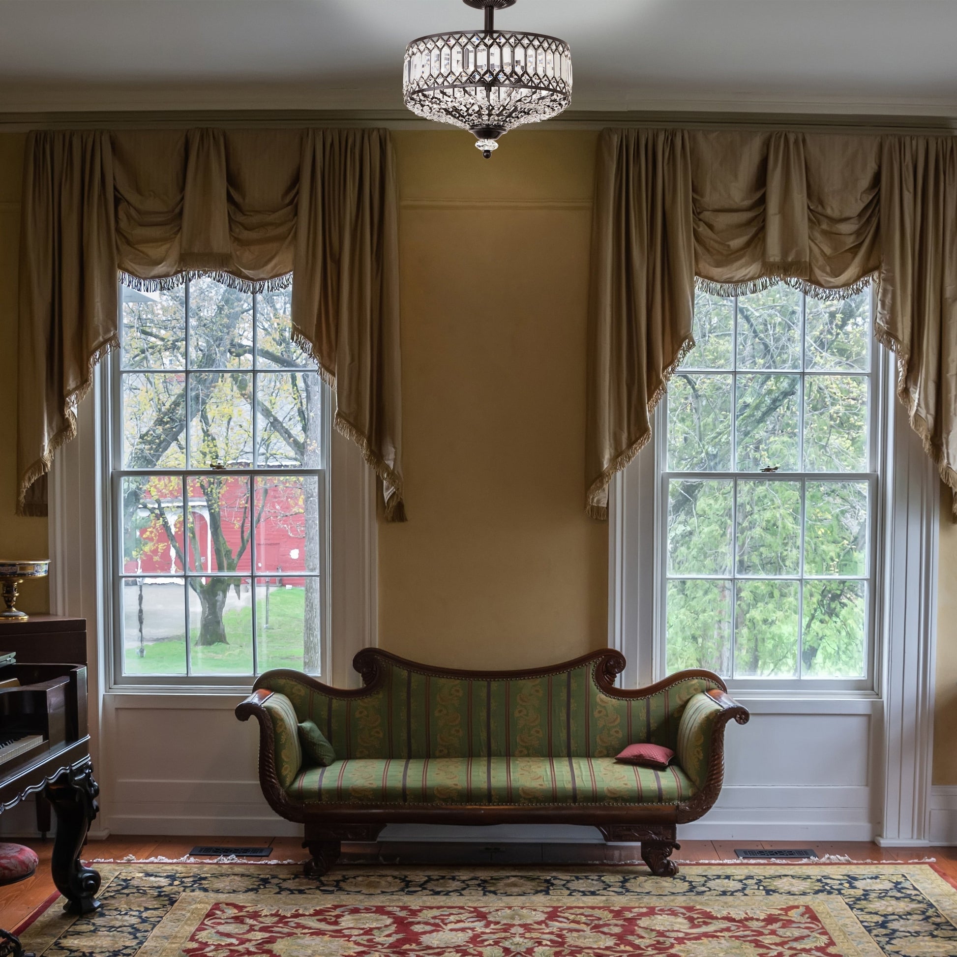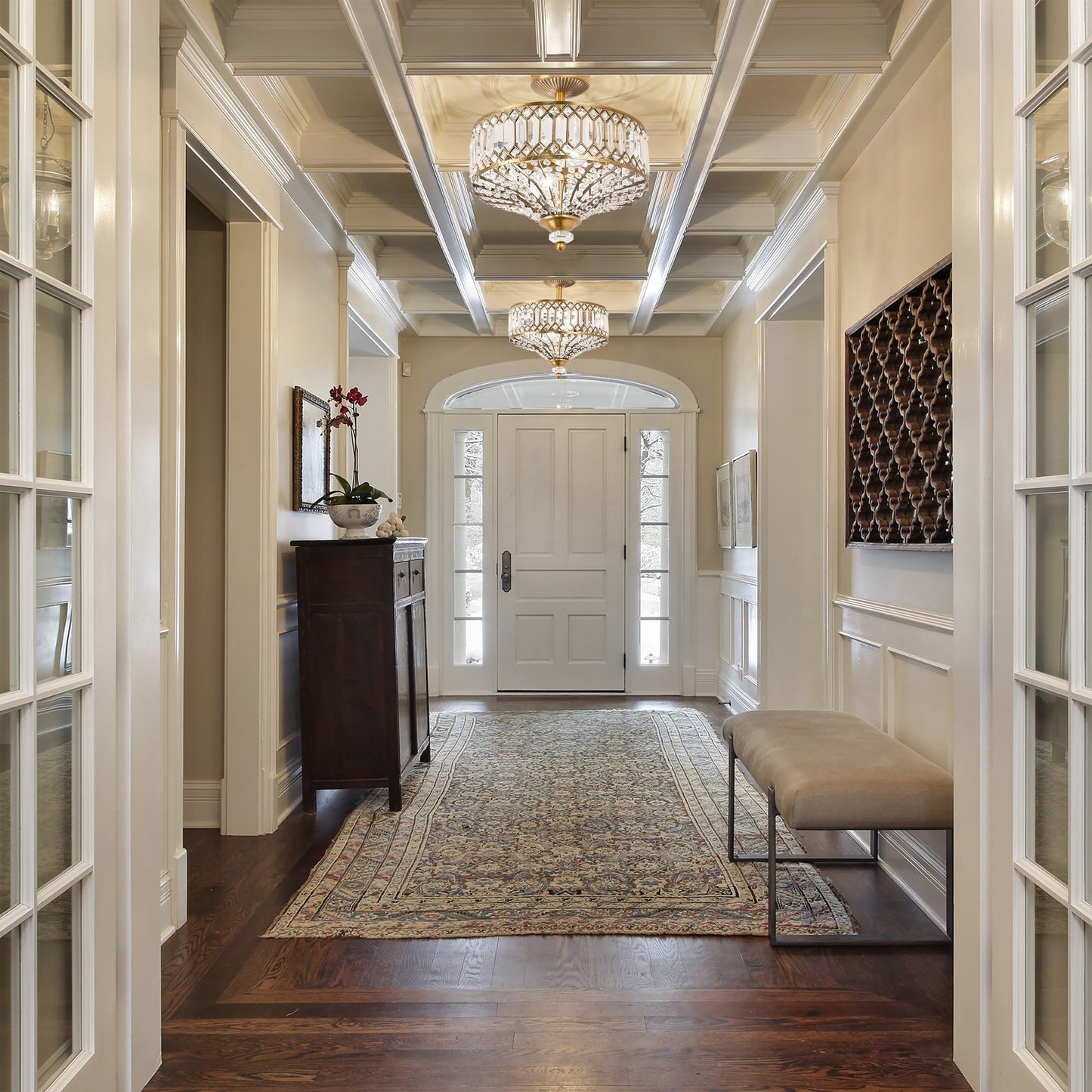 Modernisez votre décoration intérieure avec ce superbe luminaire semi-encastré de Silver Orchid. Le luminaire semi-encastré Furey en verre à étages bronze/or est doté de plus de 350 pièces décoratives en verre transparent et de cristaux K-9 qui rehaussent son style glamour. Ses finitions bronze huilé ou dorées et son design classique en font un ajout raffiné à votre intérieur.