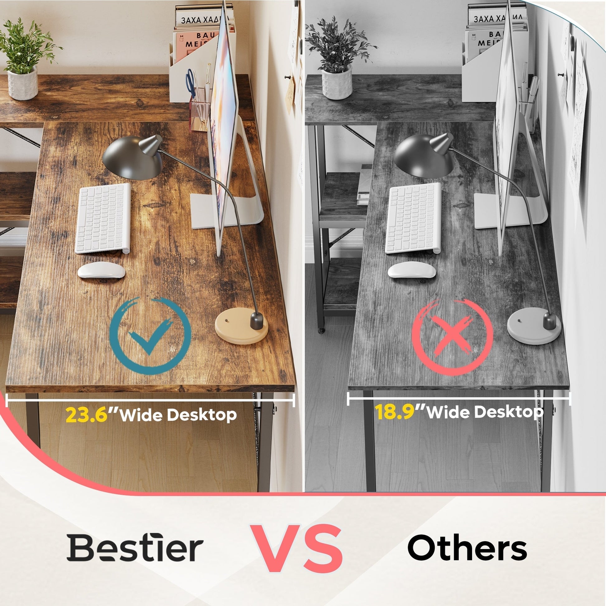 Petit bureau en L avec étagères de rangement Bureau d'ordinateur d'angle