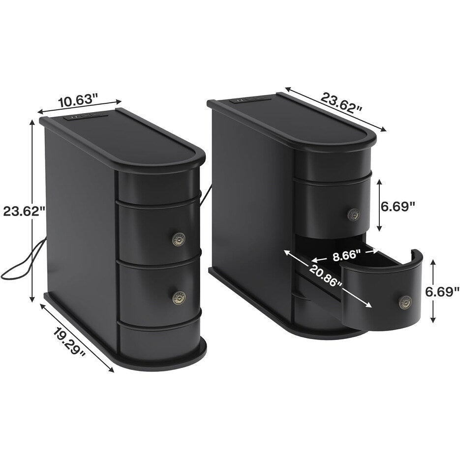Table d'appoint étroite à deux tiroirs en bois massif