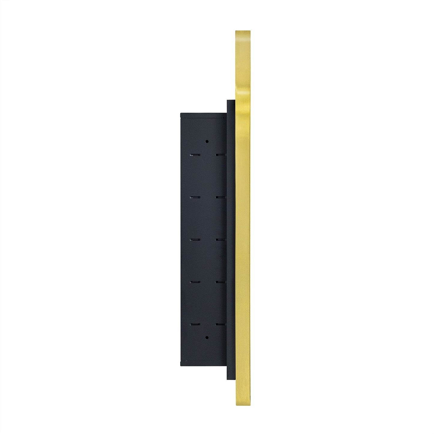 - Armoires à pharmacie cintrées à cadre métallique : portes en métal haut de gamme, finition noir mat. Charnières à fermeture automatique.