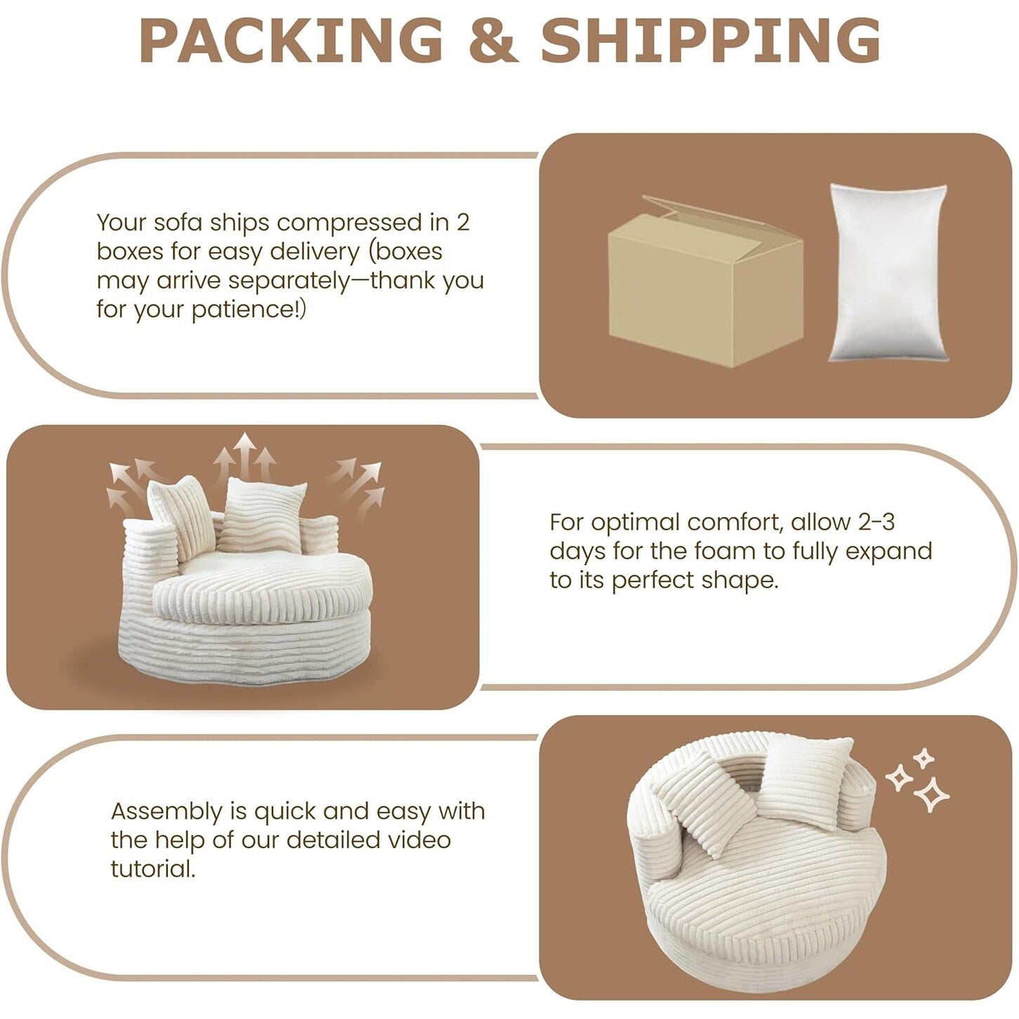 Dimensions : Profitez d'une détente ultime avec une assise circulaire de 14,2 m de large et une assise longue de 11,9 m de profondeur, enveloppée d'un confort double couche, d'un coussin en coton PP doux comme un nuage sur le dessus et d'une base en mousse haute densité en dessous pour un soutien durable et sans affaissement. Idéal pour tous ceux qui recherchent un fauteuil de salon vraiment confortable.